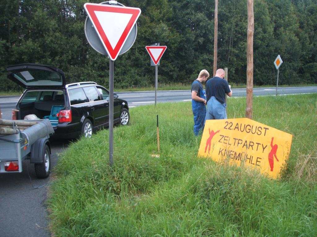 Der nächste Aufstellungort ist erreicht und wieder wird in Rekordzeit das nächste Schild aufgestellt. Im Schnitt benötigen wir 15 Minuten, um 2 Löcher zu bohren, die Pfähle einzugraben und das Schild zu befestigen.