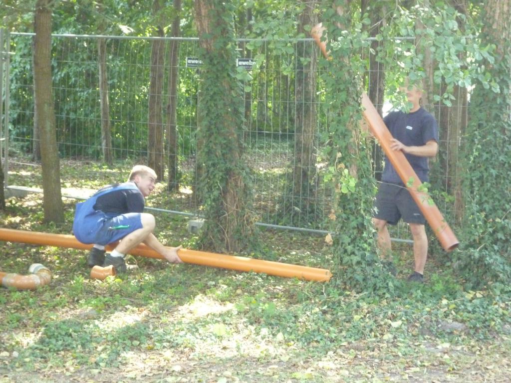 Frisch gestärkt wird erstmal ein Rohr verlegt. Bei 35°C ist dies nicht unbedingt ein Vergnügen.
